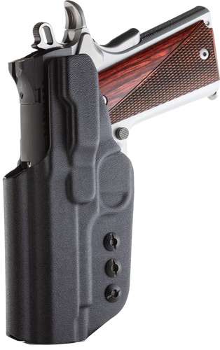 1791 Tactical Kydex IWB holsters represent a comfortable and dependable solution for everyday concealed carry. The lightweight, slim design combines multiple features for a customized, multi-position fit. In addition to being designed to fit threaded barrels, optics, and raised iron sights, it offers an adjustable cant, adjustable retention, and an integrated concealment wing that increases comfort and concealability. Also, the intelligent design, predicated on the actual firearm dimensions to create a snug true-fit, provides great retention which, unlike many Kydex holsters, will not harshly rub the finish of the firearm. This model will not fit railed 1911 Government.