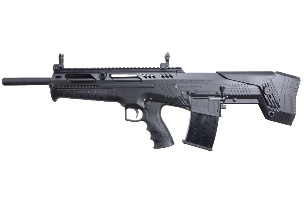 The VRBP-100 12ga shotgun offers ideal strength, length, and versatility all in one package. This 5+1 magazine fed semi-automatic bullpup shotgun comes equipped with a polymer stock directly behind the action, making it as compact as possible without sacrificing firepower. Chambered for 2 ¾” and 3” shells with a durable anodized finish, this gun is ideal for hunters, competition shooters, or home defenders alike.