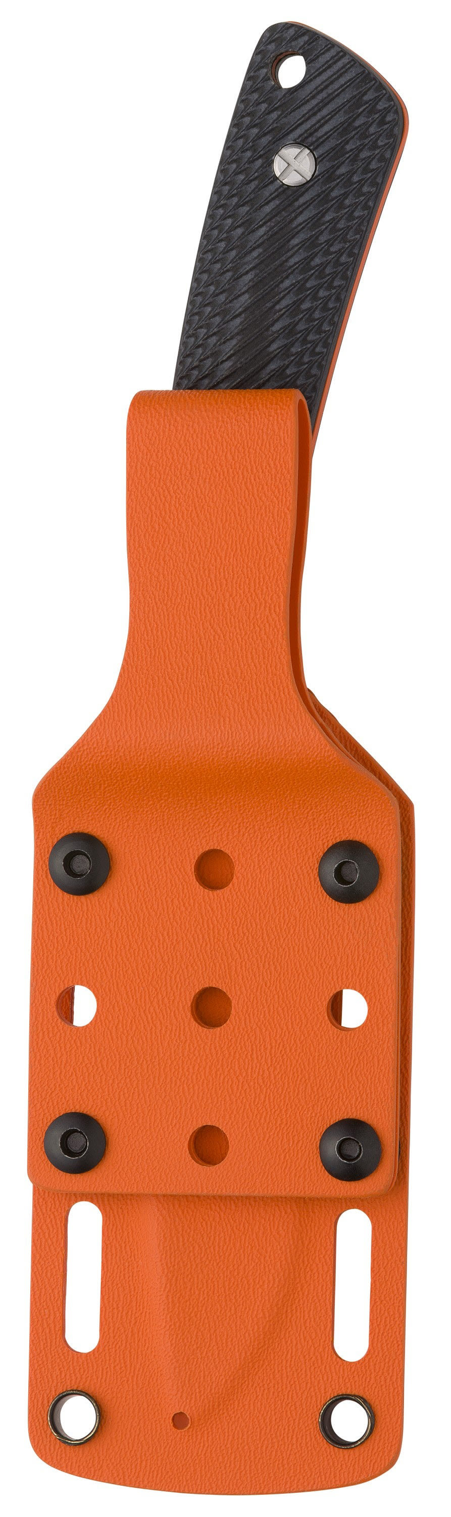 Built for the backcountry. Big game hunting often means miles of hiking, steep mountains and thick brush. It also has you looking at the gear that you carry with you. Next to your rifle and optics, a good knife is high on the list of must-haves, but that doesn't mean your blade needs to be overbuilt. While the Backcountry knife is far from minimalist, it benefits from the combination of low weight and high function. This tough fixed blade model features full-tang construction from D2 tool steel. The modified drop point blade profile is versatile, and has an orange ceramic paint finish that protects against corrosion and keeps the knife visible if you have to set it down. G-10 handle scales are easy to clean and provide unmatched grip. The included Kydex sheath can be worn in the belt or fastened to a pack using the slots.