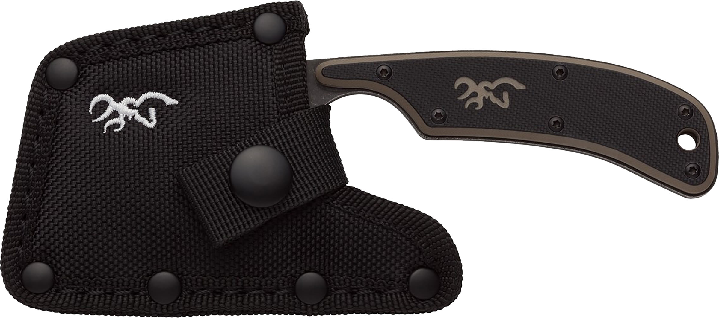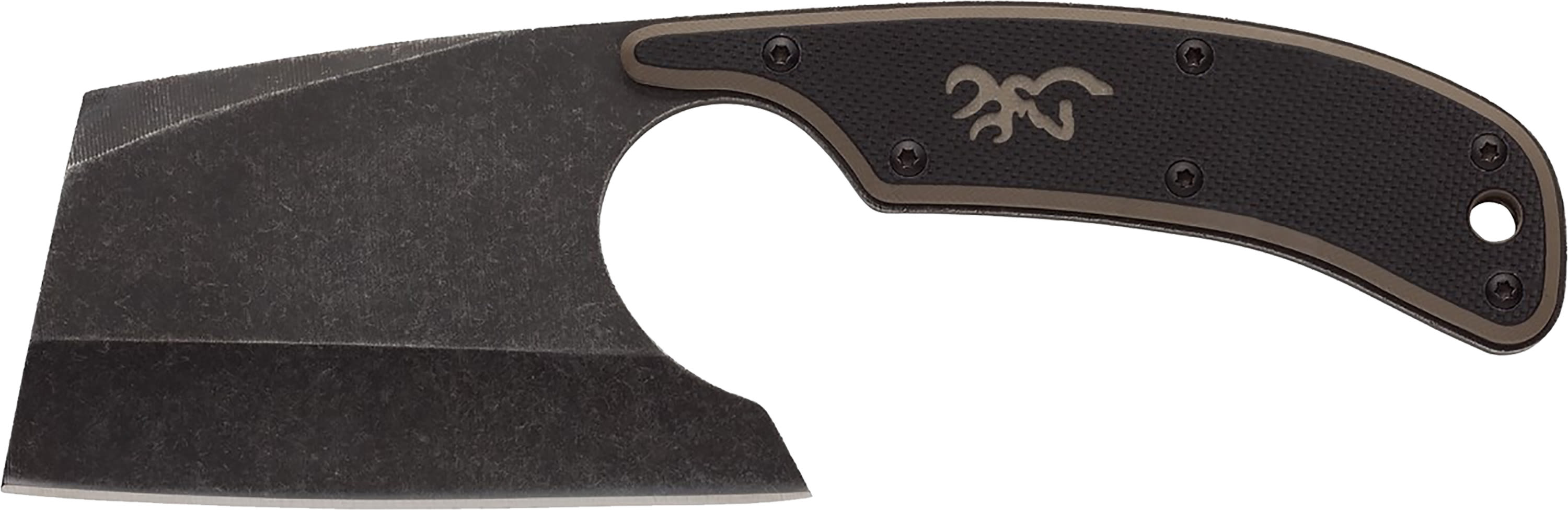 Compact cutter. The Cutoff Camp Cleaver is perfect for the camp kitchen at deer and elk camp. With a total length of 6-1/4'', the cleaver is easily packable and adding only minimal extra weight. The 2-1/2'' stainless steel blade retains its edge and easily sharpens. Full-tang construction is provides great balance and is incredibly durable when facing tough cuts. The two tone G-10 handle scales offer a secure grip. An included nylon belt sheath keeps the blade's edge secure when not in use.