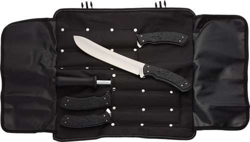 Processing your own wild game can be very rewarding and saves money. It can also be difficult if you don't have the right tools for the job. The Primal Fish & Game Butcher Set has the blades you need to get the job of filling your freezer full of meat easier than you thought possible. The durable, 8Cr13MoV stainless steel blades hold a keen edge and are easy to keep touched up using the included sharpening rod. All components of this set are easily stored inside the enclosed tool roll.