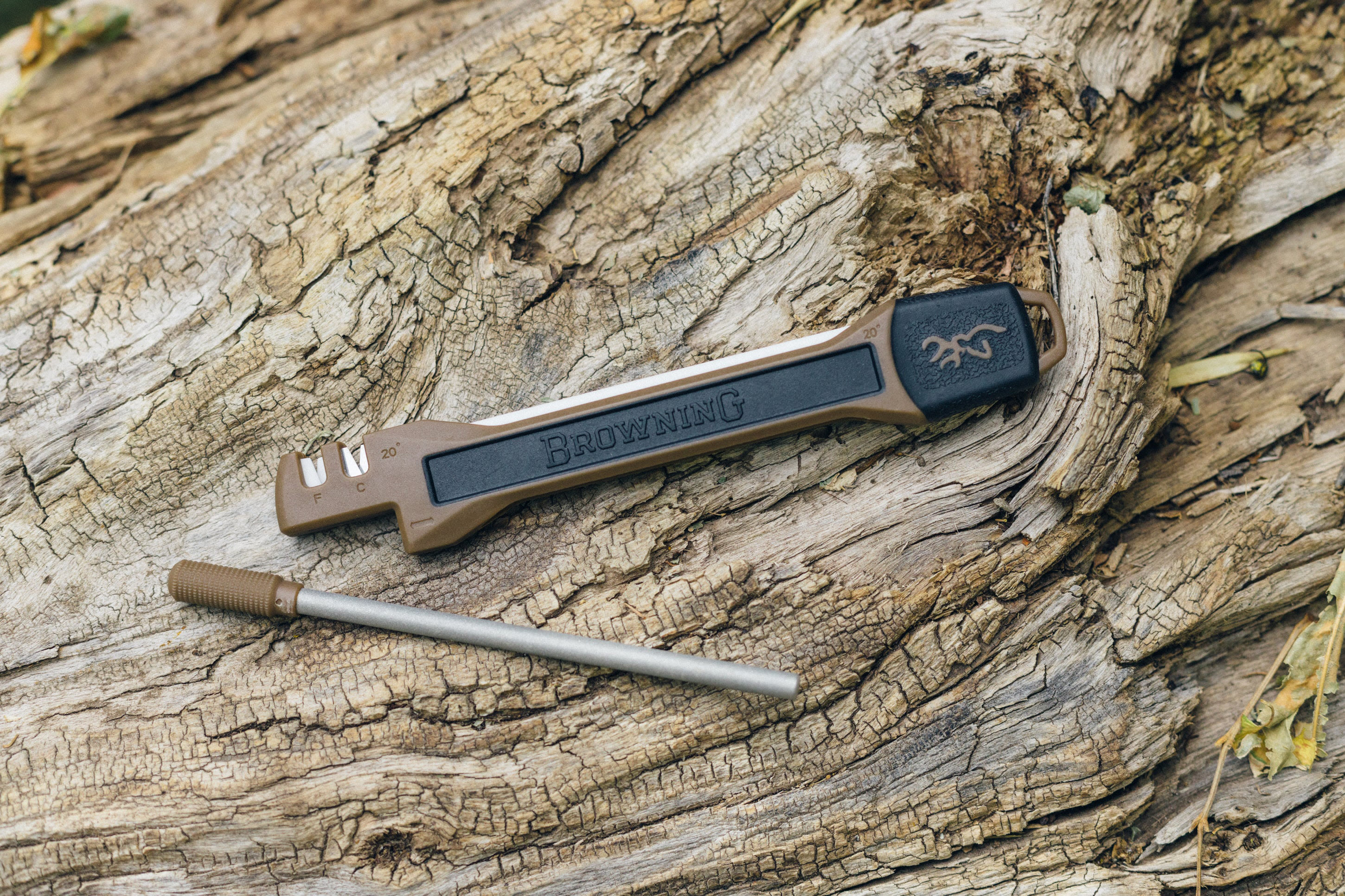 Stay sharp. A good sharpener should be easy to use, easy to take with you and easy on the budget. That pretty much describes the Primal Knife Sharpening tool. Use the carbide and ceramic sharpening inserts, the ceramic touch-up rod, the removable diamond sharpening rod or – there's one more – the diamond sharpening surface. Use it before the hunt to be ready, to tune up your blades when dressing a large animal, and most of all, use it at the end of the hunt to make sure your knives are sharp for the next hunt. This tool has everything you need to keep any hunting blade in top shape.