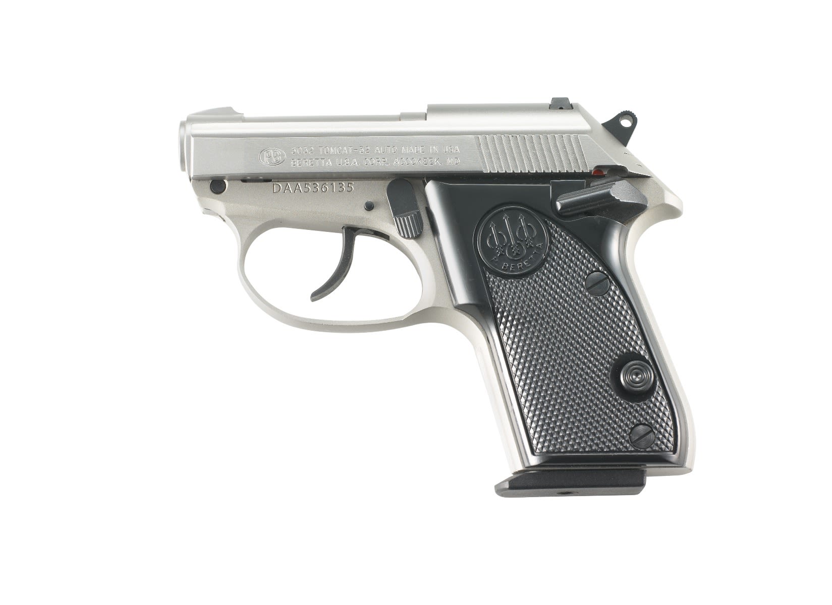 The Beretta 3032 Tomcat Inox is tiny, sized like average cell phone. Besides offering the power of the .32 ACP cartridge, it sports a tough and durable stainless-steel finish.