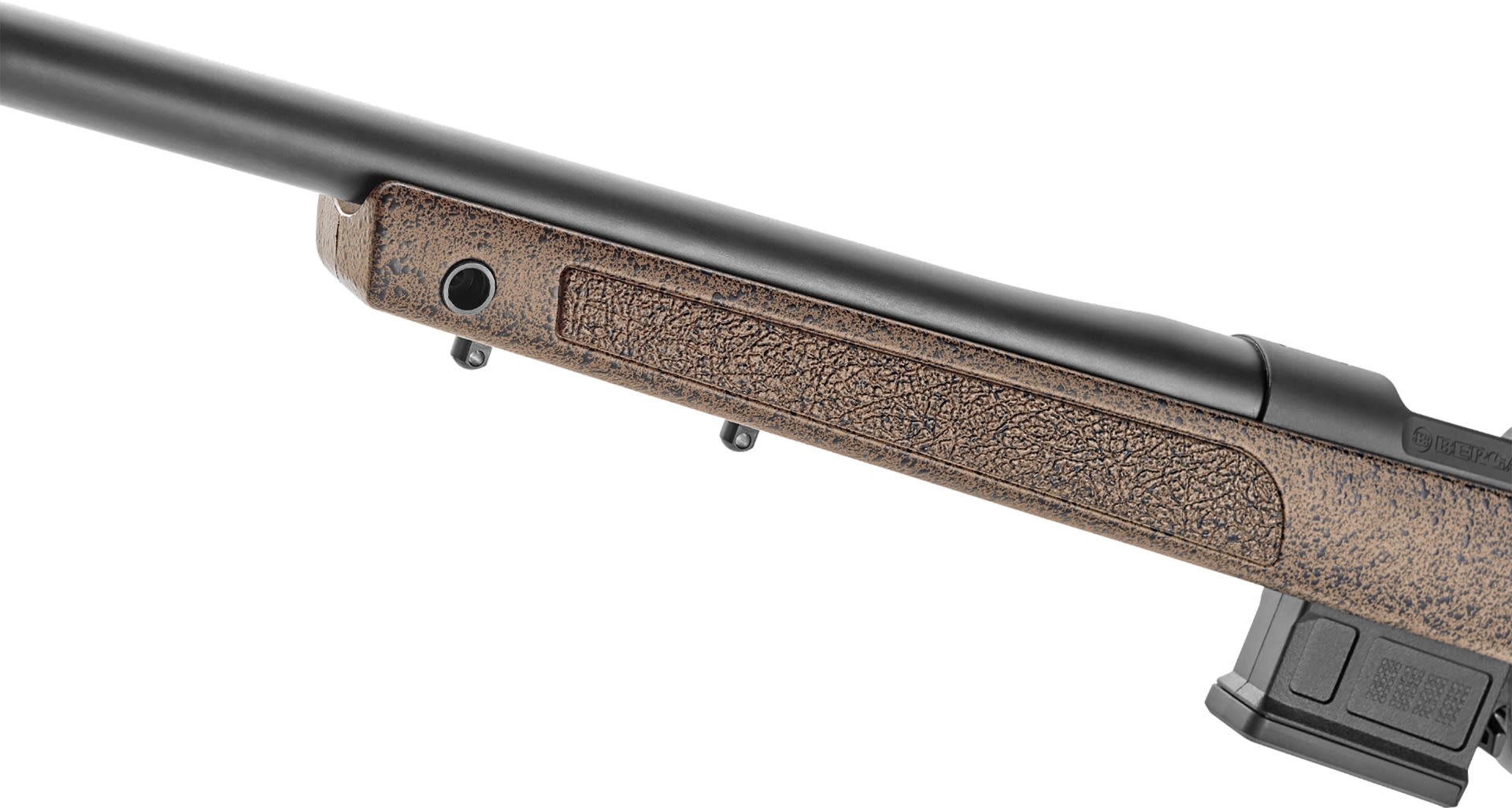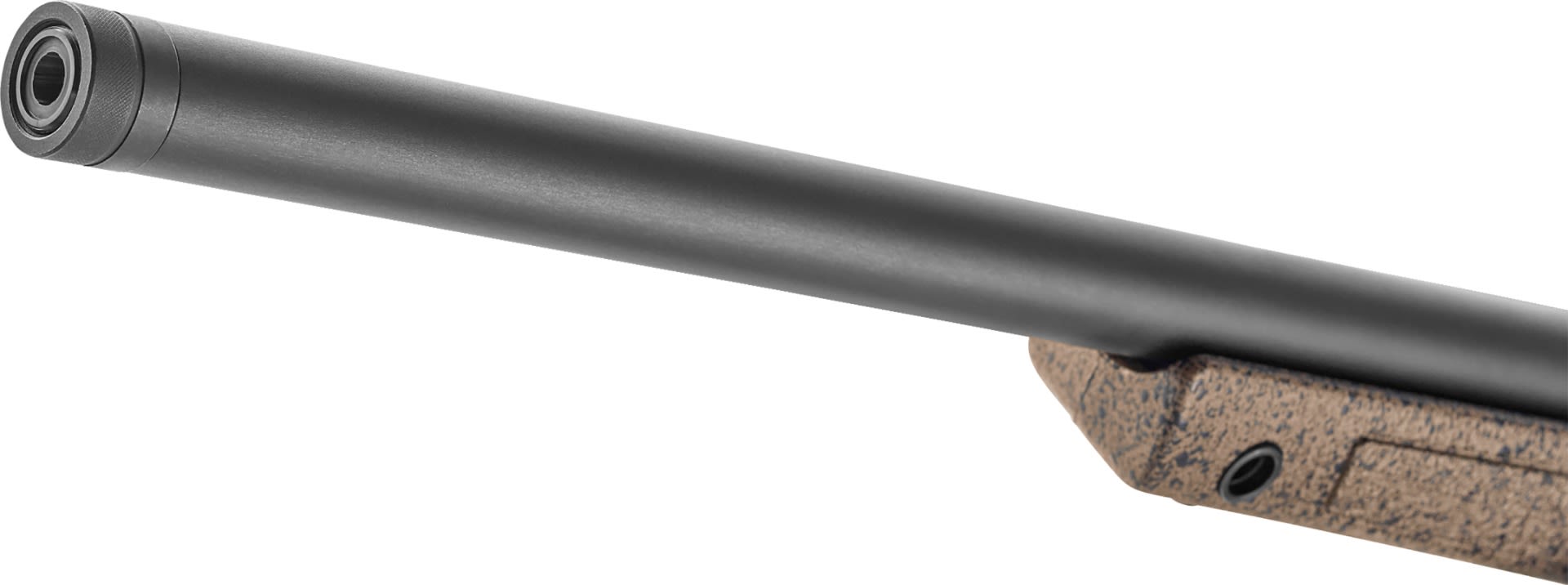 The (#6) Bergara 4140 CrMo steel barrel is finished in matte blue. The muzzle is threaded 5/8-24″ and includes a thread protector.