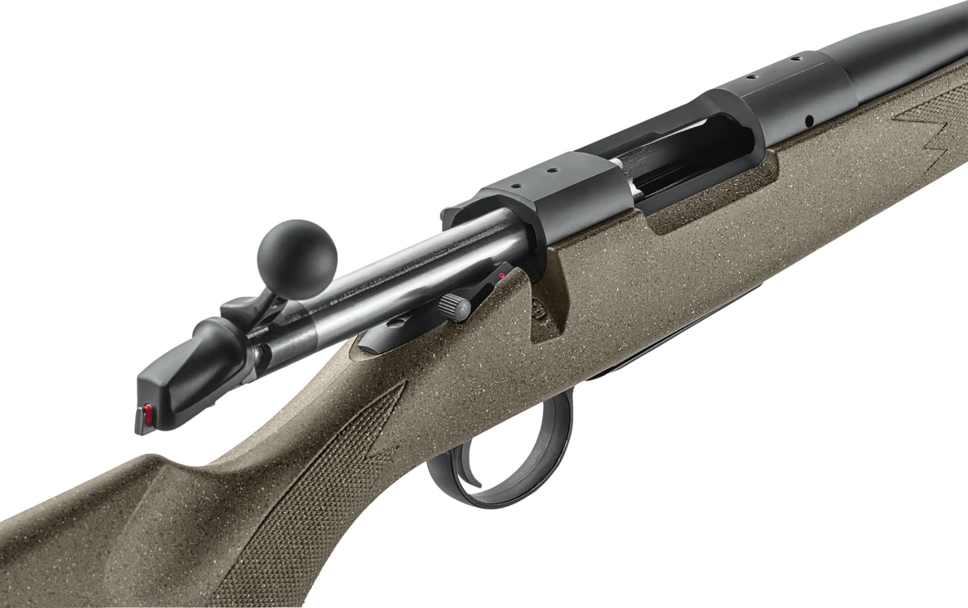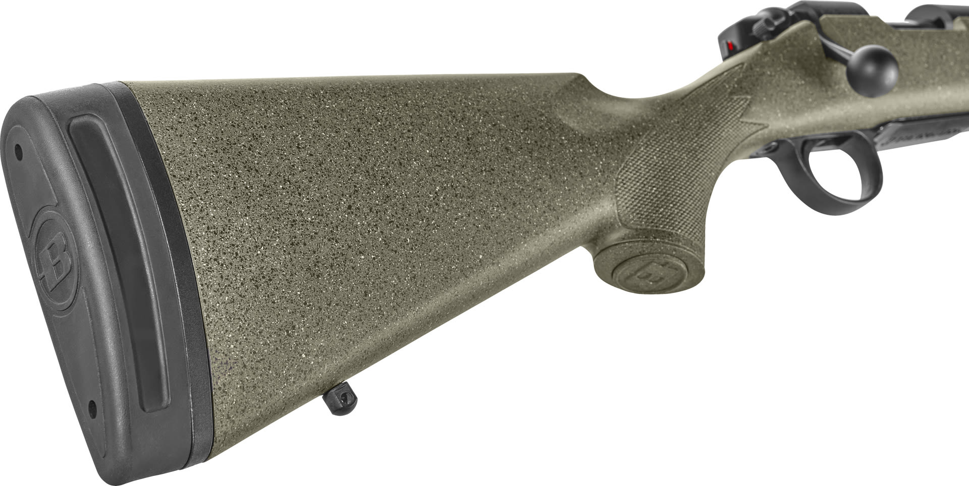 During the molding process, solid steel pillars are inserted and permanently molded into place, providing a secure and stable bedding surface for the barreled action. The base color is green with tan and black flecks, providing a very tasteful camo look. A SoftTouch coating gives the stock soft, tacky feel that is easy to grip even in harsh weather.