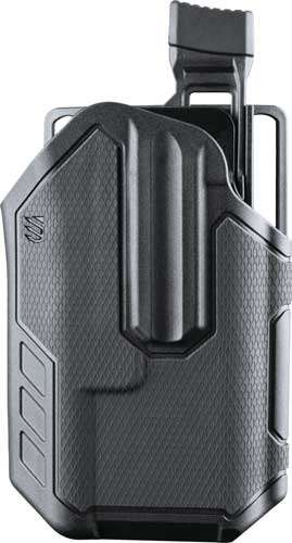 Multiple holsters for multiple handguns is no longer an issue. The Blackhawk Omnivore is a multi-fit holster that accommodates more than 150 styles of semi-automatic handguns with and accessory rail. The active retention mechanism locks onto our proprietary Rail Attachment Device, not the frame of the handgun. A thumb release disengages the locking mechanism when drawing the handgun.