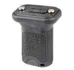 This vertical keymod short grip is a quick detachable, tool-less, with a direct mount KeyMod interface grip. It has a low-profile length for increased mobility and decreased "snag" factor. The forward angle increases the rigidity of the forearm, while providing a more natural wrist angle. Included is storage inside the grip, a spring-loaded clamps that makes installation and removal easier, and requires three KeyMod attachment hole mounting points.