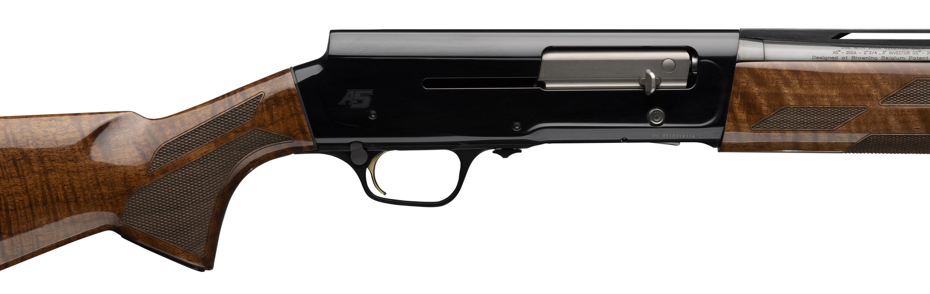 It's here. At last the long-awaited 20 gauge A5 has arrived. This lightweight wonder is built using a smaller-sized frame than that of the 12 gauge models to keep the 20 Gauge slim and light. Weighing under six pounds, the gun is a dream to carry all day through the fields, nimble to the shoulder, and packs plenty of punch when the time arrives to pull the trigger.