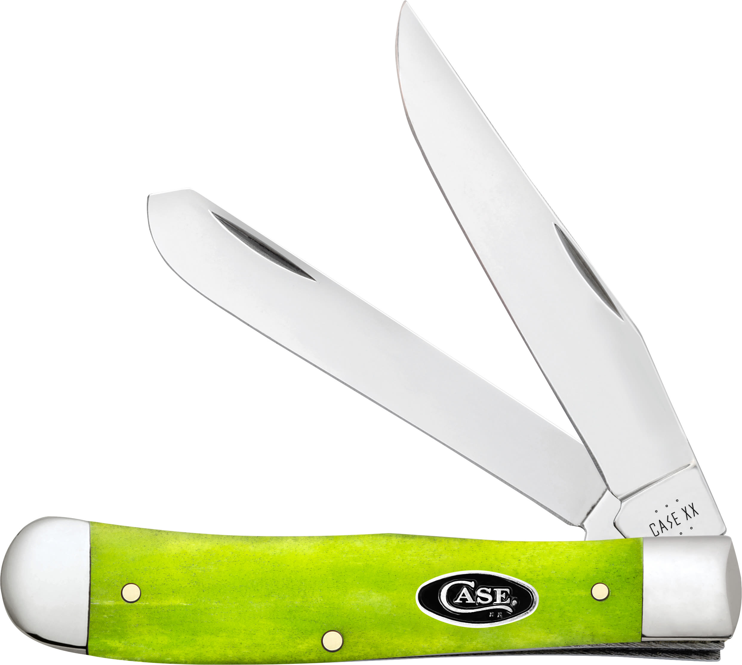 The superior saturation of bright color in the bone handles boldly contrasts with the dark Case Oval shield in our new Green Apple family. Mirror-polished Tru-Sharp surgical Steel blades finish the look while providing long-lasting performance. The Trapper gets its name from the consumer it was designed for. Because of its basic trapping and skinning blades and its lightweight, it is a must-have knife for those who trap small game. It is a jack knife with two full length blades; a slender Clip and a long Spey. The Clip blade is commonly used as a multi-purpose blade and preferred for detail work while the Spey blade is commonly used as an all-purpose utility blade. This knife is constructed with Case Tru-Sharp™ stainless steel which is a special high-carbon steel that helps the blades hold an edge longer than conventional steel. It also offers extraordinary blade strength and corrosion resistance. Comes conveniently packaged in a box. Made in Bradford, PA, USA from domestic and imported materials.