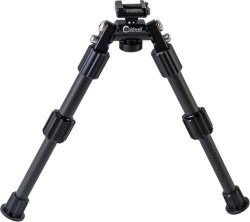Achieve maximum accuracy with the Caldwell Accumax Carbon Fiber Bipod. The Accumax Premium Carbon Fiber Bipod attaches for easy and secure lock-up. It features quick-deployment carbon fiber legs with 90 degree forward locking method or backward method with spring-loaded buttons. The Premium Carbon Fiber Bipod also features an omni-directional ball mount for 360 degree panning, a lever lock handle for fast adjustments, and of course, twist-lock leg length adjustments.