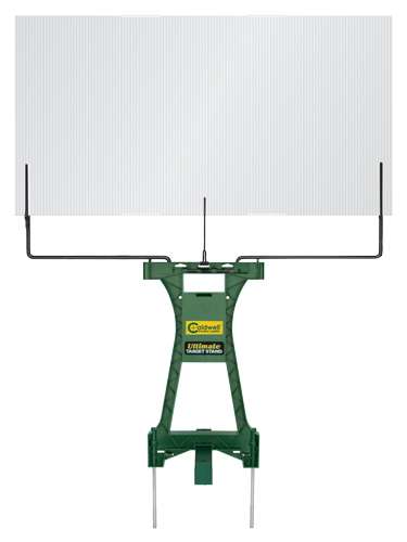The Caldwell Ultimate Target Stand features an oversized backer to hold multiple large targets (two 16″ targets side by side) and is constructed of an all-weather moisture resistant material. The large size makes sighting in easy, no more bullets missing the target. The modular frame design collapses to occupy much less space during transport & storage. The frame arms are constructed of durable steel rod and hold the backer securely in place. Removable ground stabilizer adds support from wind during use and conveniently stows onto the feet. The base of the stand is open, allowing you to use your foot to drive the molded-in metal spikes solidly into the ground. It even has an integrated storage container for holding miscellaneous range supplies such as staples or target pasters.