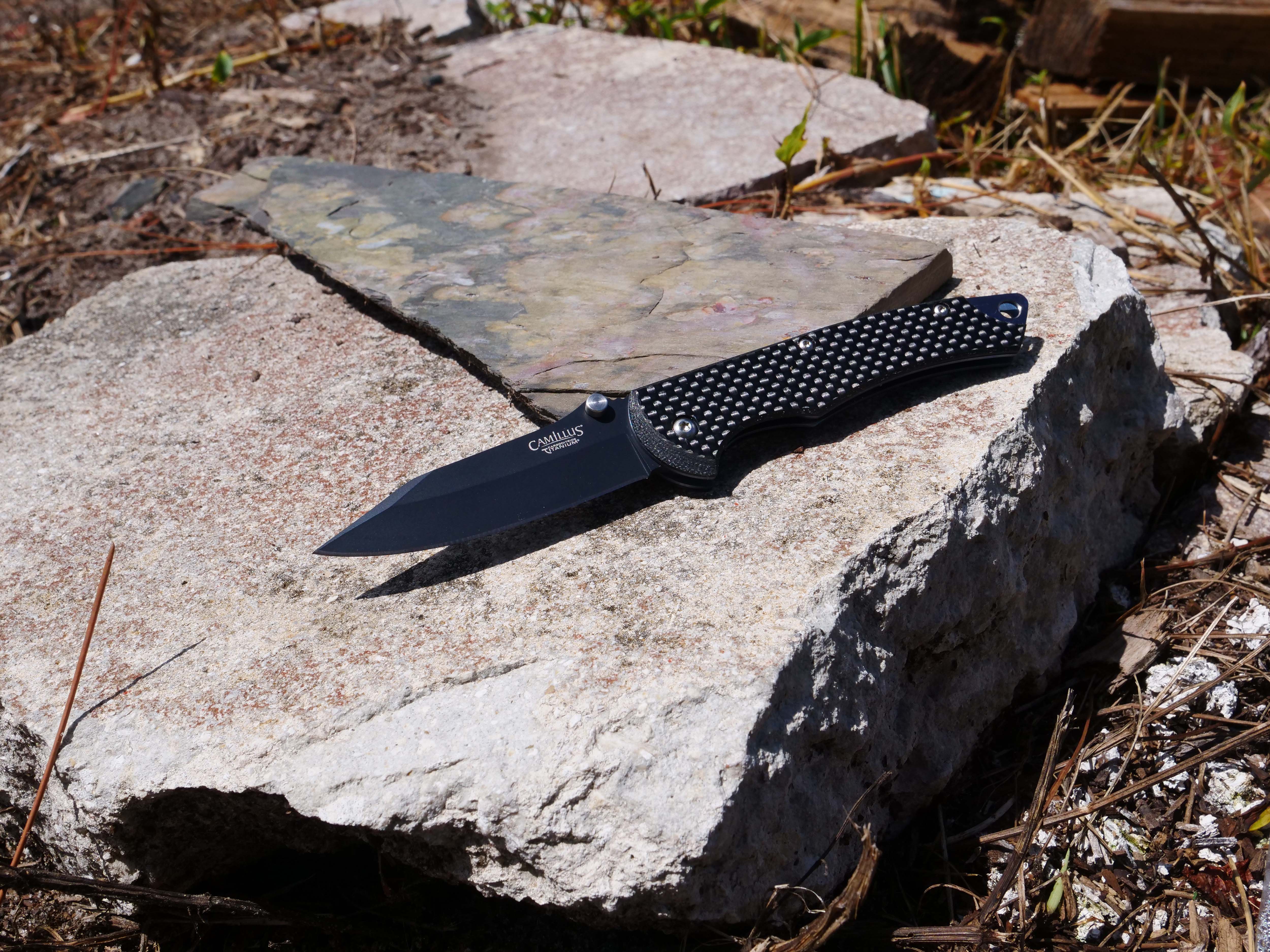 The Camillus 7.25'' Folding Knife features a lightweight, Carbon Fiber handle and an enduring VG10 steel blade. VG10 is considered a ''super steel'', because it is designed to maintain sharpness and durability above all else. To compliment its base durability, the steel is bonded with Carbonitride Titanium that provides an additional layer of resistance against rust and corrosion. It also provides a massive boost to the strength and edge retention properties of the blade, making it up to 10x harder than untreated steel. We chose a Carbon Fiber handle for this knife because it's a material that is widely used for products required to be lightweight but still structurally robust. This way, the VG10 blade can be supported properly without an overly-bulky handle. All in all, if you are seeking the ultimate balance between power and efficiency, this folding knife is for you.
