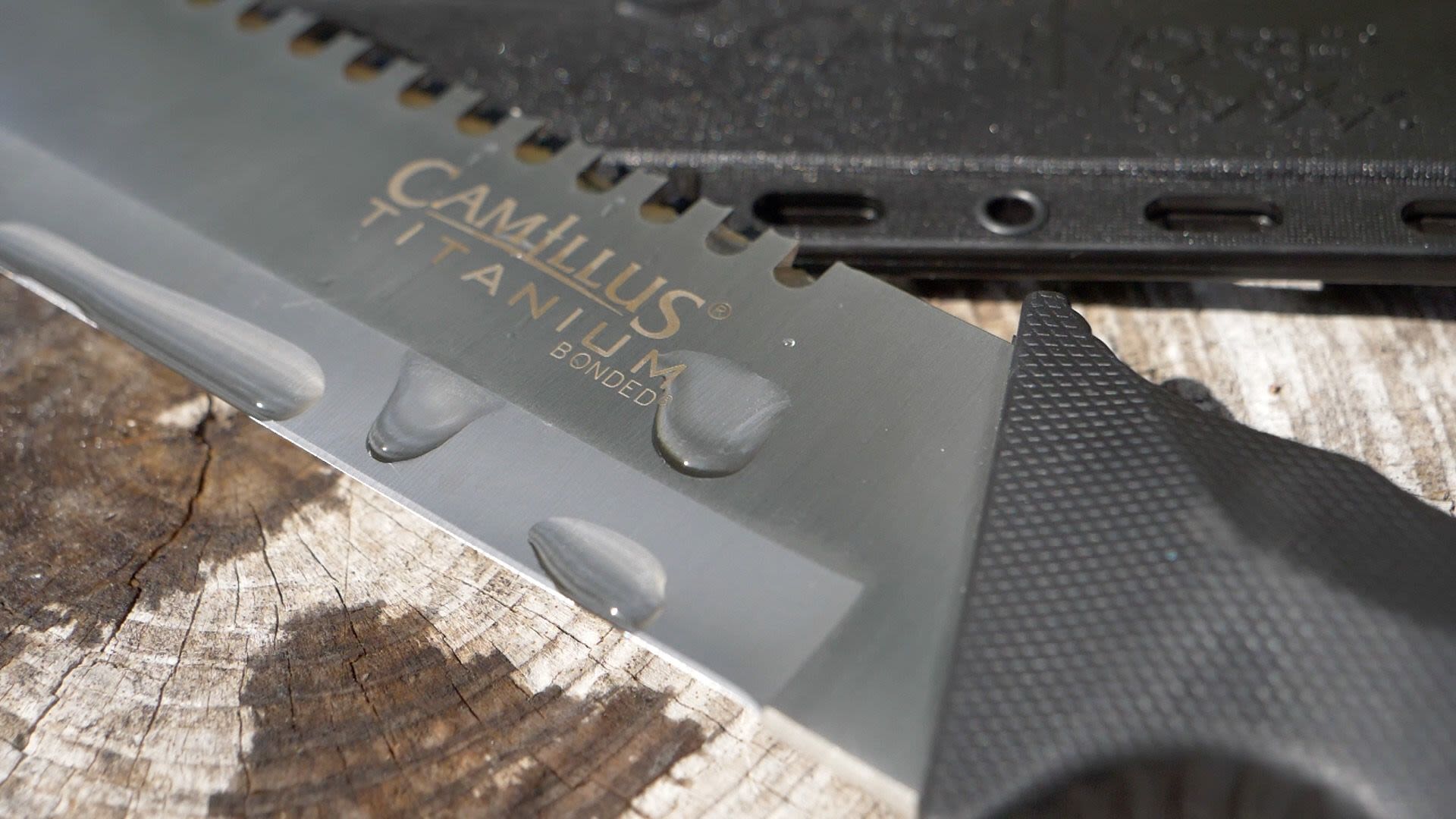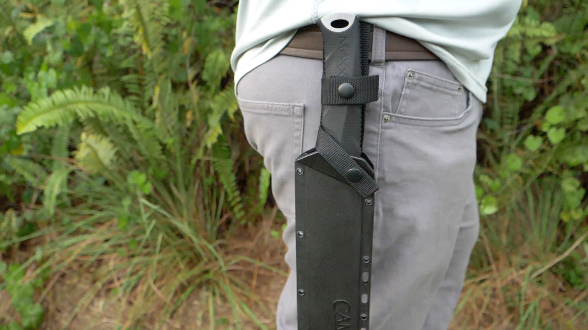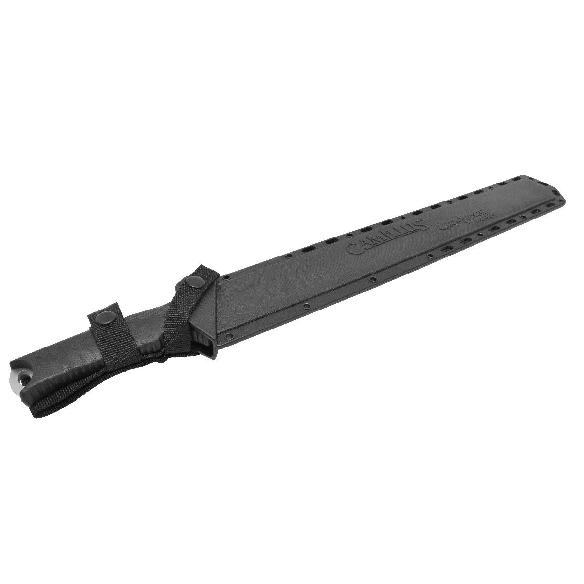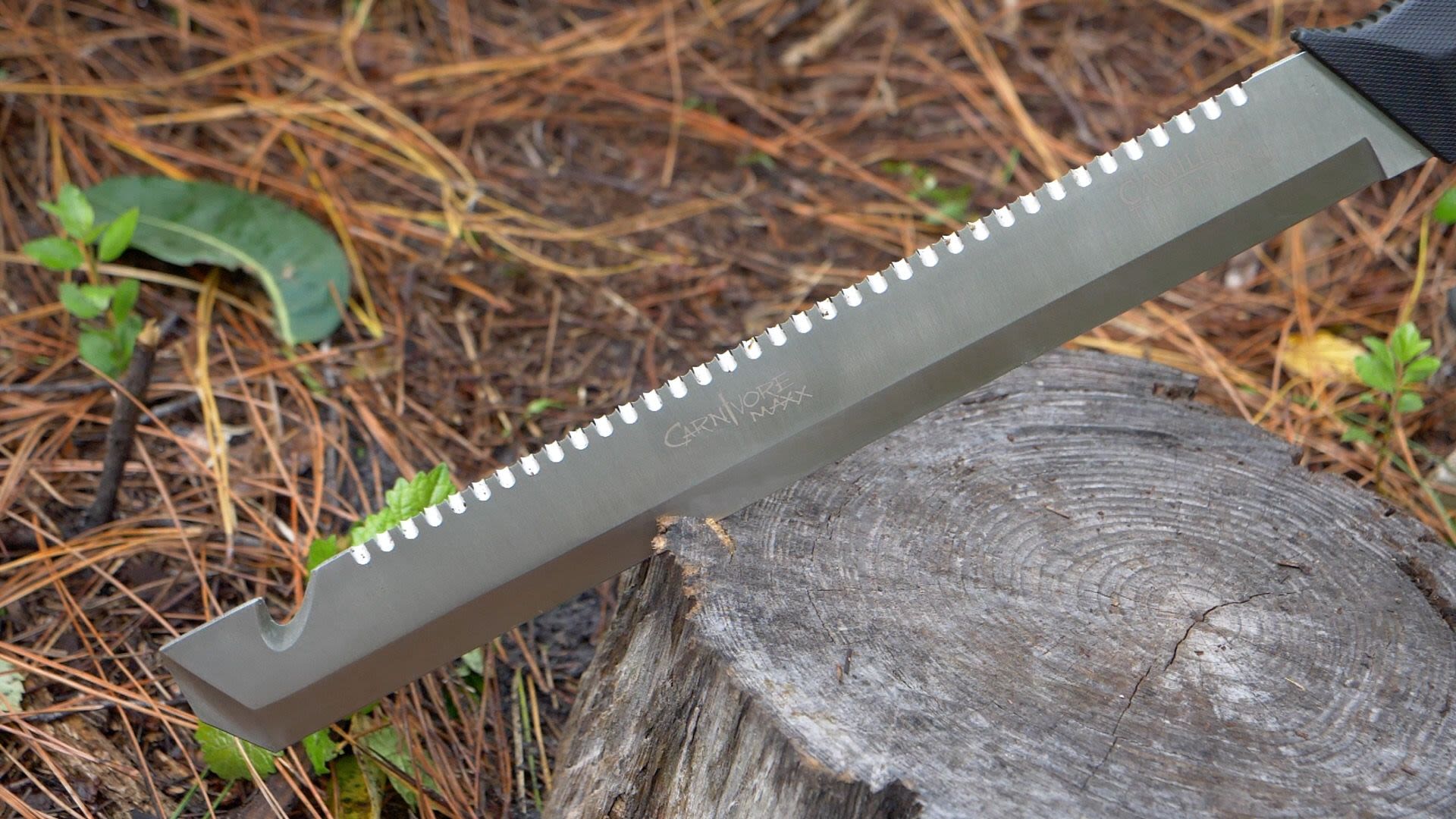The Camillus CARNIVORE MAXX 2.0 23'' Titanium Bonded Machete is a juggernaut of versatility designed to cut, dig, saw, chisel, and gut for all your needs with brutal efficiency. A staggering paragon of strength and durability, the colossal blade's titanium bonding treatment makes it up to 3x harder than untreated steel. This way, you can worry less about the longevity of the blade edge and more about crushing the challenges facing you in the field, with the treatment affording you exceptional edge retention. Complimented by a sturdy thermoplastic rubber handle, you can wield the CARNIVORE MAXX 2.0 in all its glory firmly in any environment. Also included with the CARNIVORE MAXX 2.0 is a molded sheath, integrated 12'' quadruple grind saw, cord cutter, and chisel tip. In other words, it is the perfect machete for hunting, camping, hiking, and exploring. Also backed by our Lifetime Warranty, the CARNIVORE MAXX 2.0 Titanium Bonded Machete will prove an invaluable asset to any outdoorsman, survivalist, or casual explorer with its commanding presence and functionality.