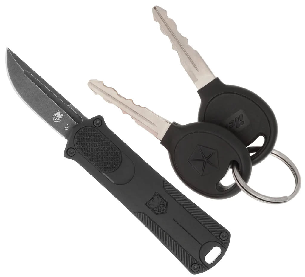 The California OTF comes standard with a stonewashed D2 steel blade, pocket clip and pouch. CobraTec knives are backed by their Lifetime Warranty.