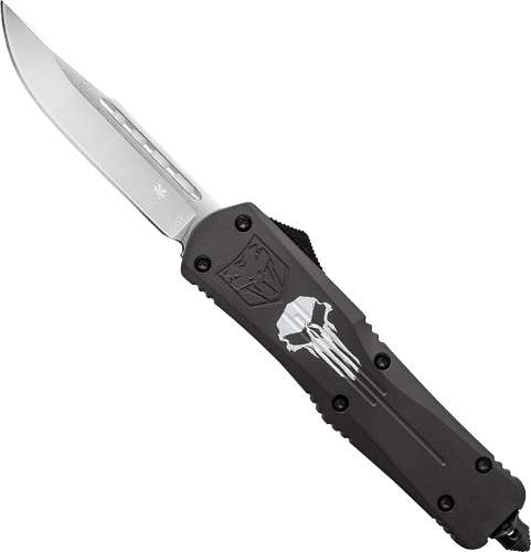 The Large FS-3 Cerakote® Punisher Black starts from a high-grade aluminum alloy handle and features a high quality D2 steel blade. The Cerakote ceramic coating enhances abrasion/wear resistance, corrosion resistance, chemical resistance, impact strength and hardness to the handle.