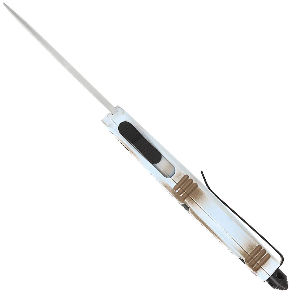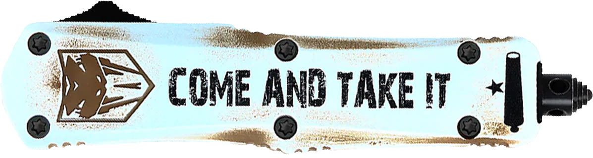 The FS-3 ''Come and Take It'' is a dual action OTF knife that begins with a high-grade aluminum alloy handle that has been cerakoted and is loaded with a high quality D2 steel blade.