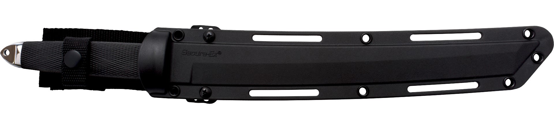 There isnt a person working in the knife industry today that knows more about the Tanto than Cold Steel does. It was, after all, Cold Steel who invented and popularized this knife style in the early 1980s. Cold Steel has spent millions of dollars persuading the public, both through advertising and live or videotaped demonstrations, of the Tantos many advantages. They have been producing Tantos for more than 30 years now, and there is still no factory or custom knifemaker around making a Tanto that can approach the cutting, slashing or piercing power of one that is manufactured by Cold Steel. All of their Tantos feature a deep lustrous satin finish on the hollow ground blade bevels and a contrasting line grain finish on the blade flats. This technique highlights their state of the art grinding methods and emphasizes the Cold Steel Tantos unique appearance. In addition, the Tantos come with our famous flattened oval Kraton handle. The oval shape provides a solid grip and resists rolling or twisting in the hand under hard use, the kind that, over time, would destroy a lesser knife. The use of Kraton in knife handles is another Cold Steel innovation. Kraton is an unparalleled space age material that wont crack or rot and is immune to the ravages of bad weather. The tapered, solid steel pommel is another important Tanto feature that should not be ignored. Lynn Thompson designed it to concentrate the full force of a crushing blow in a small area so that even a moderately powerful blow can be remarkably effective in disarming or otherwise incapacitating an attacker. The Tanto series knives in San Mai all come with a thick, high quality Secure-Ex sheath that is sure to give years of hard service and keep your Tanto at your side, ready for action.