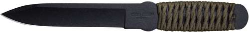 The Cold Steel True Flight Thrower beats the competition by a wide margin. For strength, we use 1055 carbon steel and finish it with a black, baked on protective coat. This makes for a hard, yet resilient blade that will bounce back from any throw. And for versatility, the True Flight Thrower has a utility edge that will stand up to your toughest chores.
