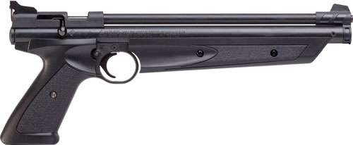 The Classic American Pump Pistol features a sleek and modern design. This pneumatic air pistol has a single-action bolt design for easier cocking and loading, a rifled steel barrel for accuracy, and an easy-pump forearm for variable pump power allowing the user to control the velocity for whatever shooting you are doing. The Classic American Pump Pistol features a single-action bolt design for easier cocking and loading, a rifled steel .177 caliber barrel for accuracy, and an easy-pump forearm for variable pump power. It has a fixed blade front sight and a windage-adjustable rear sight designed to use as a notched sight or as a peep sight.