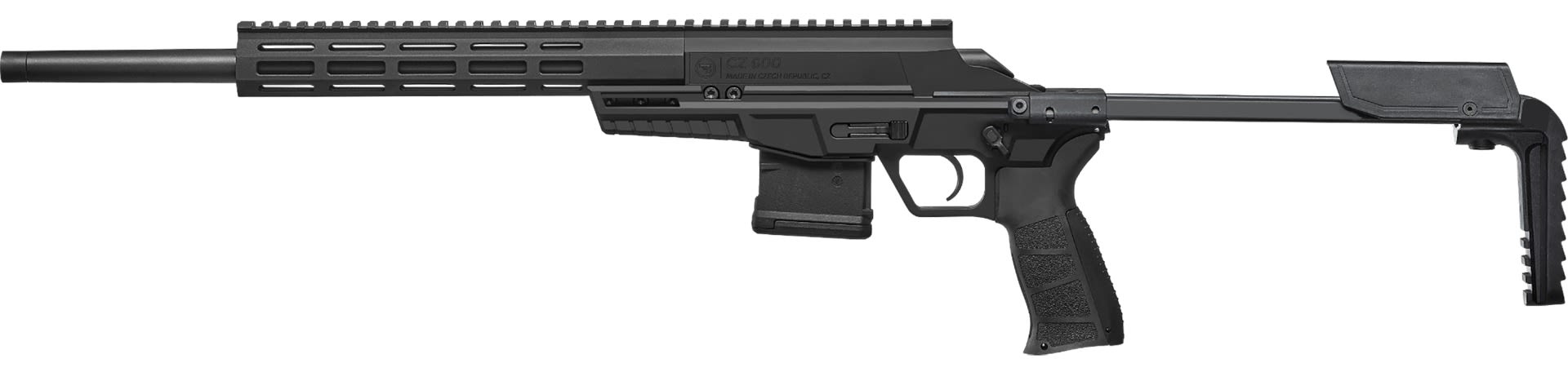 You’ll find yourself adventure-ready with the CZ 600 Trail. This light compact rifle is packed with a full set of features that make a difference to today’s marksman. The Trail features AR magazine compatibility in 223 Rem and uses CZ Bren 2 magazines in 7.62×39. In addition to a common magazine, the Trail delivers ambidextrous mag release and safety levers that will feel familiar to those used to the AR platform. The PDW-style stock is quick to deploy and allows the Trail to collapse to a very compact OAL when space is at a premium.
