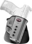 The Evolution series is the next step in the advancement of holster development. A tension adjustment screw is incorporated to allow the user to customize the ease of presentation and the security of retention, functioning with the proven Fobus passive retention design. The E2 series features one piece holster body construction, and like all Fobus holsters, the Evolution, is lightweight and includes steel reinforced rivet attachment and a protective sight channel. The paddle also includes a rubberized insert to provide both comfort and stability.