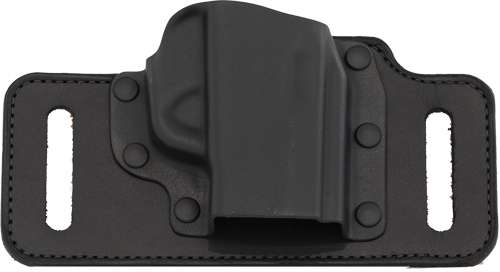 Galco's TacSlide mates a Kydex holster pocket to a slotted leather backplate for a belt holster that is fast, concealable and very economical. An open top and near-neutral cant make the draw fast and simple, while the open bottom accommodates multiple barrel lengths. The forward-molded design contours to the hip and the belt slots pull the handgun into the body for concealment. Fits Glock 43, 43X, 48, 48 MOS; S&W M&P Shield EZ 9mm; Springfield Hellcat, Hellcat Pro; Taurus GX4.