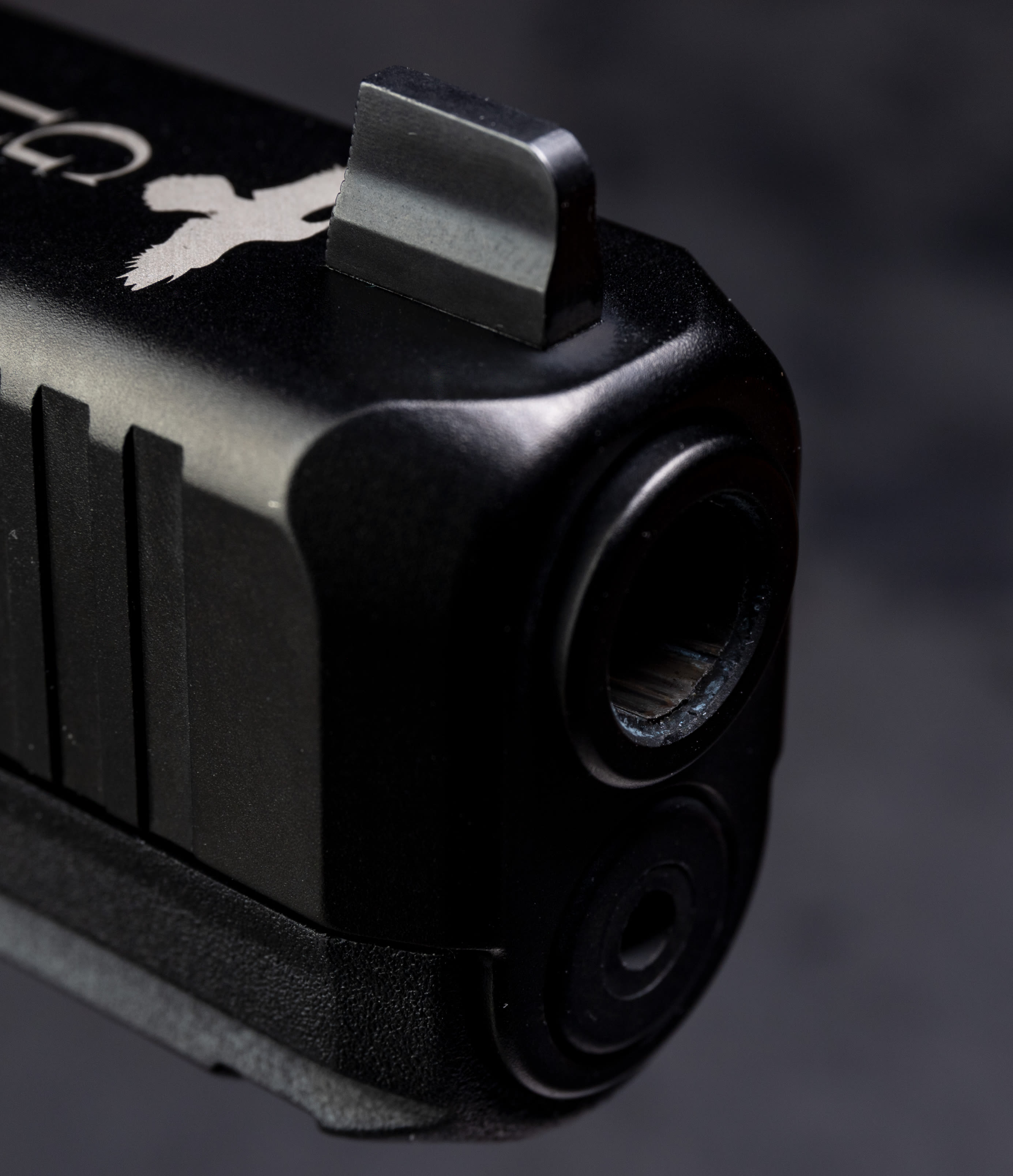In addition, the GGSP is fitted with Ameriglo suppressor-height sights which allow co-witnessing with the Holosun, FBI rounded mag release, and lanyard loop. The GGSP also includes the GLOCK factory “minus connector” which reduces the trigger pull weight to approximately 4.5 pounds. The top of the slide is engraved with the Gunsite logo and iconic Gunsite raven image. This exclusive also comes with three 17-round magazines.