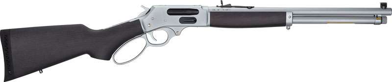 These two Henry offerings are essentially the same as their blued steel counterparts in profile and general dimensions. The .30-30 features a 20” round barrel, straight-wrist stock, 5-shot magazine capacity, and the .45-70 sports an 18.4” round barrel, a pistol-grip stock, and a 4-shot magazine. Both rifles come with the same adjustable semi-buckhorn rear and brass bead front sights. The receivers are drilled and tapped for a scope, and both come with sling swivel studs and ventilated rubber recoil pads installed.