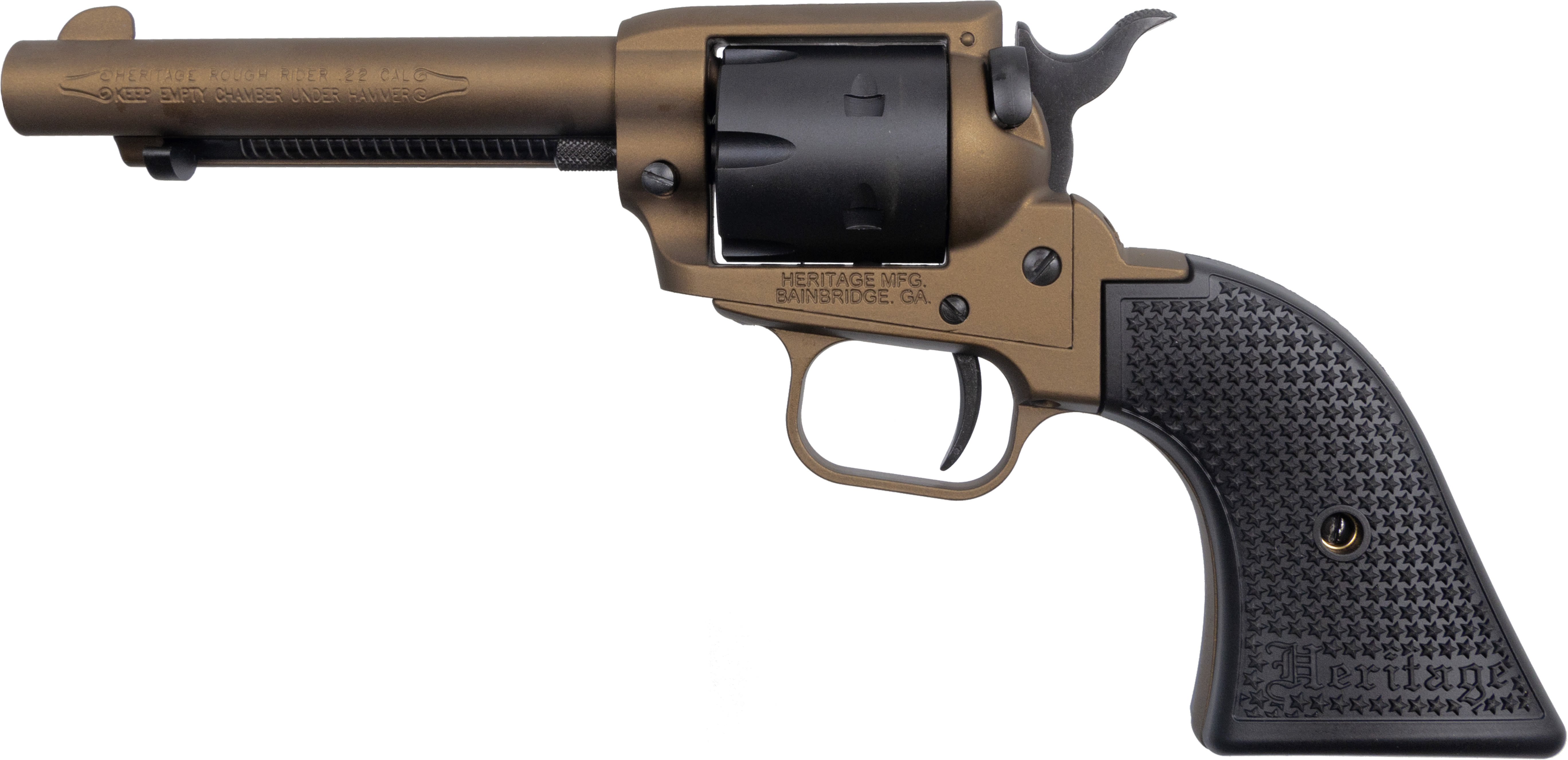 For making tin cans dance in the back yard, pinging steel, or controlling pests and varmints around the farm, nothing beats the low-cost, high-adrenaline thrill of a single-action rimfire revolver. The Heritage™ Rough Rider® handguns are built with numerous grip options and feature the same classic profile and precision action as their big-bore counterparts yet come chambered in 22 LR.