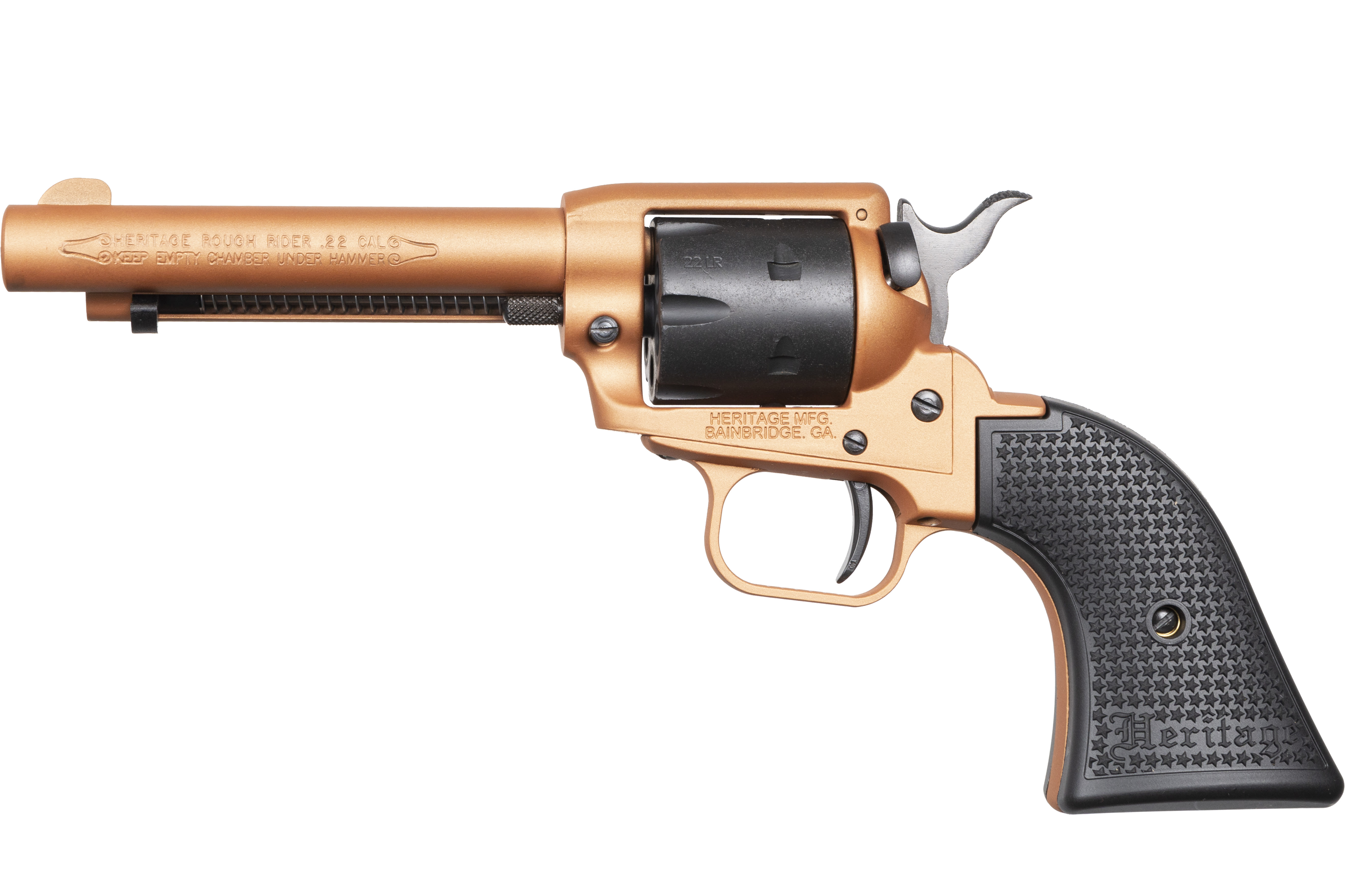 The Heritage™ Rough Rider® handguns feature the same classic profile and precision action as their big-bore counterparts yet come chambered in .22 LR.