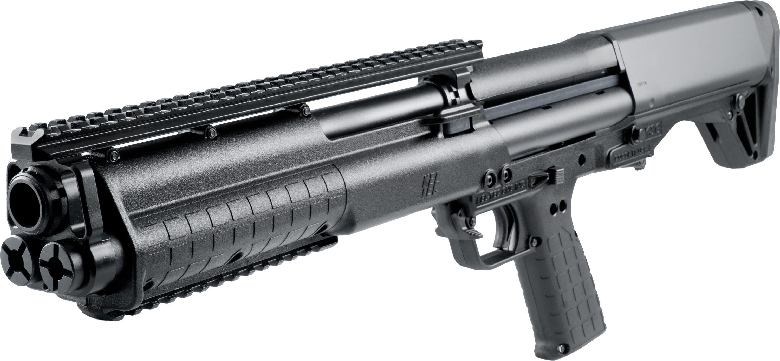 The KSG™ is no ordinary tactical shotgun. Its dual tube magazines hold a dozen 3 inch, 12 gauge shells (plus one in the chamber), with the flexibility of switching between various projectiles. A patented downward ejection system makes it truly ambidextrous, while its 26.1 inch overall length, 18.5 inch cylinder bore barrel and 6.9lbs of weight make it is as compact as legally possible.
