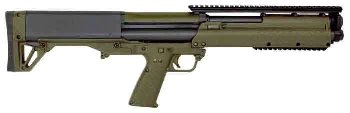 The KSG™ is no ordinary tactical shotgun. Its dual tube magazines hold a dozen 3 inch, 12 gauge shells (plus one in the chamber), with the flexibility of switching between various projectiles. A patented downward ejection system makes it truly ambidextrous, while its 26.1 inch overall length, 18.5 inch cylinder bore barrel and 6.9lbs of weight make it is as compact as legally possible.