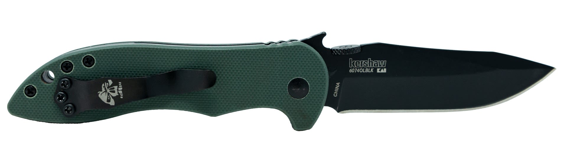 This right-sized Kershaw-Emerson looks great in olive drab. Kershaw Knives and Emerson Knives have joined forces on a series of knives that combine the precision engineering of Kershaw with Emerson's uncompromising functional design. The CQC-5K features a modified clip-point blade for versatile cutting capability. Black-oxide coating protects the blade and makes it non-reflective, too. G10 handles in olive drab provide secure grip and a locking liner means safe and solid blade lock up.