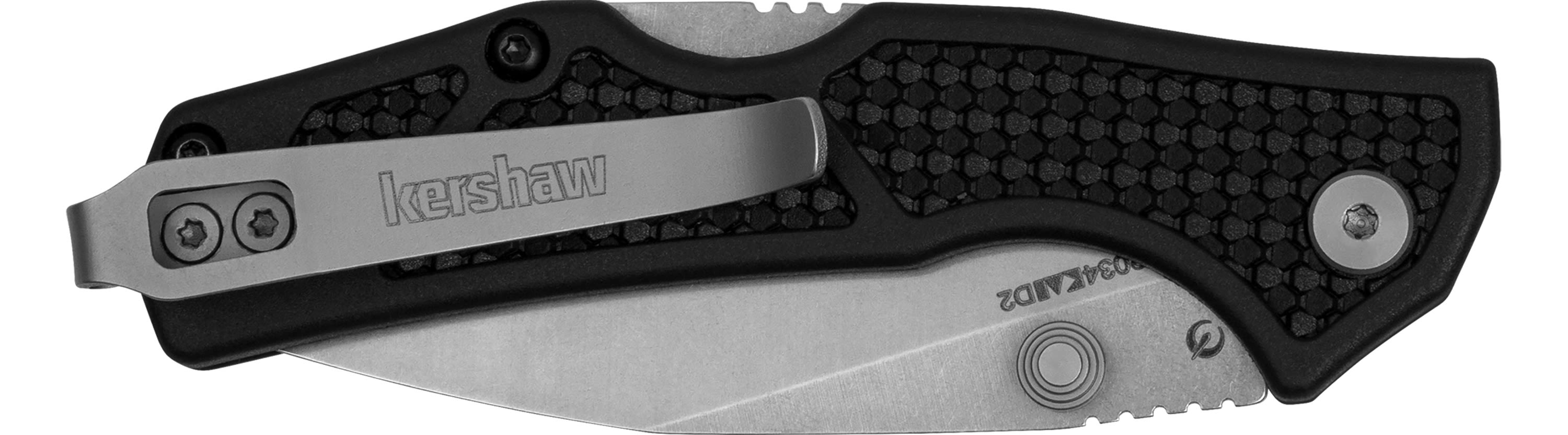 - Kershaw mid-lock folder; comfortable, textured glass-filled nylon handle