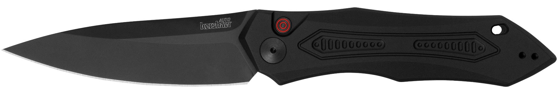 Get a dark tactical look with the Launch 6 automatic from Kershaw. This slim—and ever-so-slightly wicked-looking—knife features premium CPM 154 blade steel for edge retention, corrosion resistance, wear resistance, and toughness. A black Cerakote coating enhances looks and blade protection. The Launch 6 also has a reversible pocketclip and a pre-drilled lanyard tie-off hole.