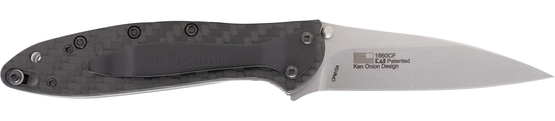 The famous Kershaw Leek goes upscale with a handsome suit of carbon fiber and upgraded blade steel. The carbon fiber handle also lightens this Leek's weight, making it an extremely comfortable EDC. The razor-sharp blade of high-performance CPM 154 enables it to handle a full range of cutting tasks. The blade is a modified drop-point, so it’s a good slicing knife, while the slim tip gives it piercing capability and the ability to do detailed work.