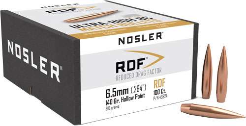 For those wanting to squeeze the most performance from their competition rifle, Nosler's RDF (Reduced Drag Factor) match bullet line is the ideal choice. The RDF line was designed from the ground up to provide exceptionally high BCs, which create the flattest trajectory and least wind drift possible. The keys to the RDF's outstanding performance are Nosler's meticulously optimized compound ogive and long, drag-reducing boattail, which make handloading a snap and create an incredibly sleek form factor. RDF bullets also have the smallest, most consistent meplats of any hollow point match bullet line, so there is no need to point or trim tips.