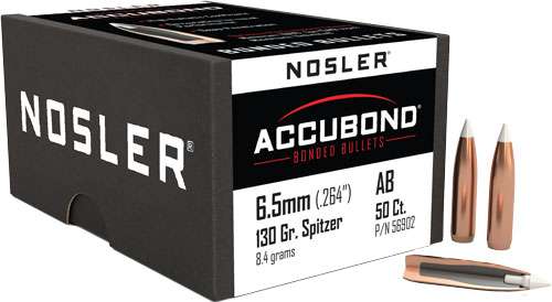 Through an exclusive bonding process that eliminates voids in the bullet core, AccuBond couples Nosler's proven copper-alloy jacket with its special lead-alloy core. The result is a bullet that flies true, penetrates deep and retains its weight, without causing extensive barrel fouling. The unique white polymer tip resists deforming and initiates expansion on impact. Nosler's Solid Base at the rear of the bullet acts as a platform for large diameter mushrooms.
