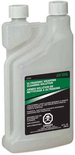 Designed for use with the RCBS Ultrasonic Case Cleaner, Ultrasonic Weapons Cleaning Solution quickly removes grease, carbon buildup and fouling from firearm parts. The fast-acting synthetic detergent cleans all part surfaces, and its rust preventive helps stop corrosion. Ultrasonic Weapons Cleaning Solution is easy to use, and its formulation is non-corrosive and non-combustible.