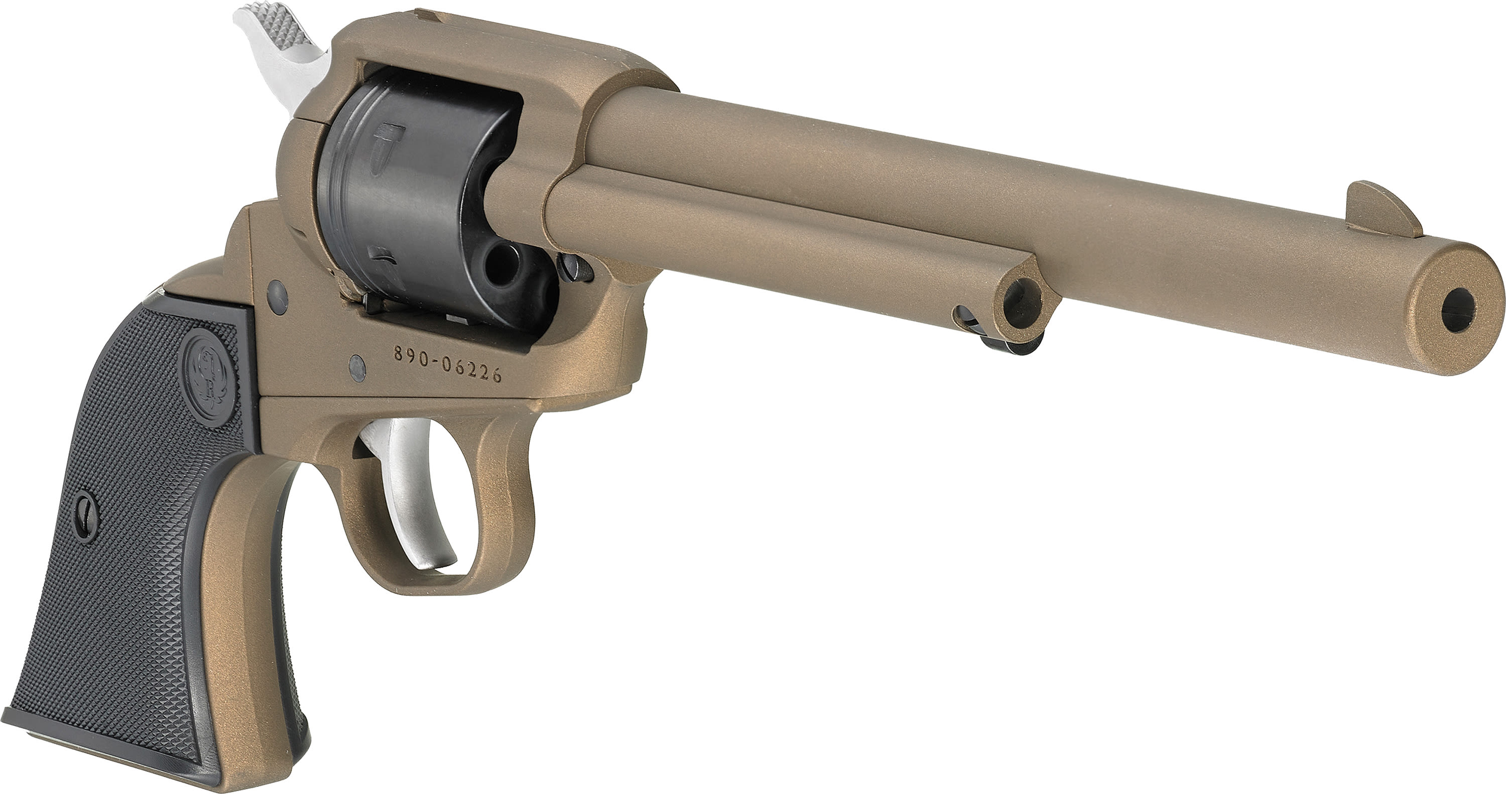 Ruger® Wrangler® single-action revolvers are now available with longer 7.5'' barrel and a Single-Six® pattern grip frame, offered in an attractive Cerakote® finish. The attractive price, combined with the affordability of rimfire ammunition, make these revolvers ideal for learning to shoot, introducing friends or family to the sport, or just experiencing the fun of single-action shooting.