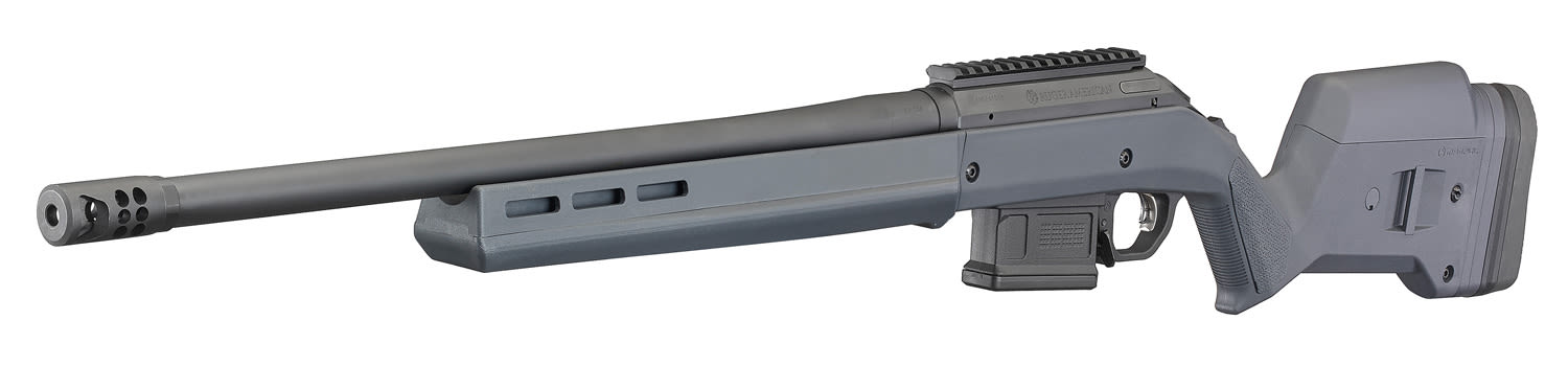 Prey beware, there is a new hunter in the field. The Ruger American Hunter is a modern development in the pastime as old as man. Taking designs off of competition and sniper rifles, Ruger has developed the next step in hunting evolution. Featuring a Magpul Hunter American short action, the length of pull and comb height can be adjusted to perfectly fit nearly every hunter. A Ruger Marksman Trigger provides a crisp release with a 3-5 lb. adjustable pull weight. The Heart of the American Hunter rifle is the barrel, and Ruger has spared no expense; a heavy-contour (.850'' at the muzzle) barrel features a Ruger Precision Rifle Hybrid Muzzle Brake to effectively reduce recoil while minimizing noise and blast to the sides of the shooter and produce minute of angle accuracy that can make every hunt a success.