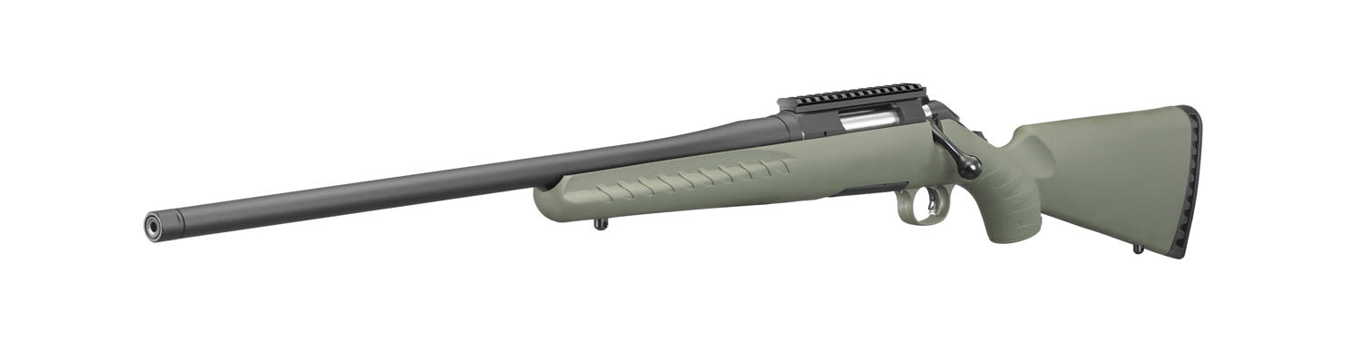 The Ruger American Rifle® Predator is built with innovative designs and modern materials to provide shooters with a practical and cost-effective bolt-action rifle, meant for serious long-range shooting. Ruger designed the Marksman Adjustable™ trigger for the American Rifle to be user adjustable for weight-of-pull. The Marksman trigger is light and crisp, allowing for precision shooting. The stock is constructed from rugged composite with grooves and texturizing on the pistol grip and fore-end, which provide a solid, non-slip grip in any hunting environment. The stock features molded-in Power Bedding® recoil/bedding blocks to rigidly attach the barreled action to the stock and free-float the barrel. A soft rubber recoil pad absorbs recoil considerably. The Predator model features a heavier tapered barrel to aid in long-range shooting, and is threaded (5/8''-24). The barrel is cold hammer-forged, resulting in ultra-precise rifling for exceptional accuracy. A 3-lug bolt design with a 70 degree bolt lift provides plenty of clearance between the bolt handle and the riflescope. A 2-position tang safety is easily accessible and quick to operate by both right- and left-handed shooters; the bolt can be cycled for loading and unloading the rifle with the safety engaged. A cocking indicator at the end of the bolt can be seen and felt. This American Rifle Predator model comes with one detachable, ultra-reliable, flush-fit magazine, adding to the rifle's ease of handling. The receiver is drilled and tapped with a factory installed, 1-piece aluminum, sight rail. Made in USA.