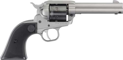 Not only is it chambered for affordable .22 LR ammo, the Ruger® Wrangler Single-Action Rimfire Revolver with Silver Cerakote® Finish is the perfect sidearm for life on the ranch or the farm. It's great for taking care of varmints and pests that complicate life in the country. Thanks to the cold hammer-forged barrel with 1:14 rifling, it has the accuracy needed to hit scampering pests. A Silver Cerakote finish protects metal surfaces from rust and corrosion, while an aluminum alloy frame offers a quick-drawing, lightweight feel. Its checkered synthetic grips provide a confident grip and extra shooting control. Its transfer bar and loading gate interlock virtually eliminate accidental discharges. Line up the blade front and integral notch rear sights and experience the straight-shooting accuracy of the Ruger Wrangler Single-Action Rimfire Revolver.