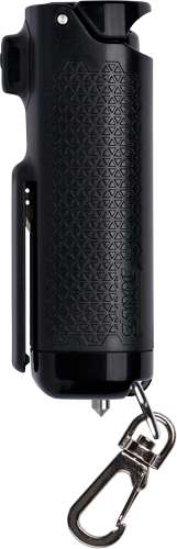 Sabre's Safe Escape 3-in-1 Auto Tool cuts through malfunctioning seat belts in seconds without worry of injury. Its durable, stainless steel tip punctures window glass for a speedy escape. The gel has a range of 10 feet for protection at a safer distance. Deploys 25 bursts per canister providing protection against multiple targets. A snap clip allows for effortless attachment to keys or bag and quick detachment when you need it most.