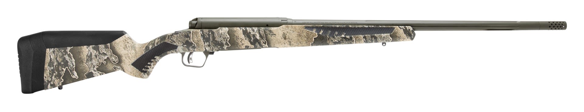 Low temperatures. Dry air. Low pressures. Long shots. With the new Savage 110 Timberline, they're all attainable. The rifle is built to maximize accuracy with a fluted barrel, overmold surfaces, target crown, and omni-port muzzlebrake. The Model 110 action is secured three-dimensionally along its entire length within the AccuStock internal chassis and AccuFit system lets hunters customize length-of-pull and comb height of the Realtree Excape synthetic stock. Plus, the user-adjustable AccuTrigger offers a crisp, clean pull critical for making precise shots at extreme distances. The OD Green Cerakote on the barrel, receiver and other critical parts protects against corrosion and harsh terrain for close out the perfect hunt.