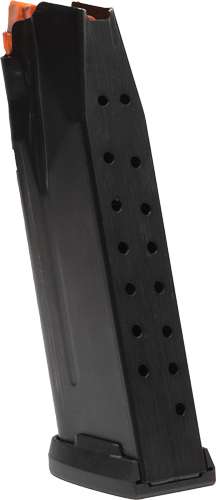 Factory 17-round steel magazine for the P365-XMACRO pistol. This magazine includes rear witness holes to confirm loaded capacity and an orange follower making it easy to identify when unloaded. We include two additional interchangeable floor plates to accommodate the grip length differences of the P365, P365X, and P365XL. It comes configured for the P365-XMACRO.
