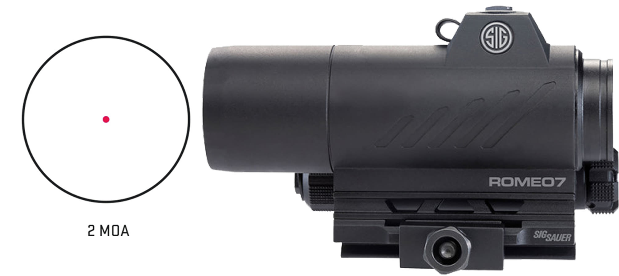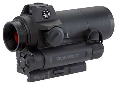 The ROMEO7 full-size red-dot sight provides the civilian and armed professional with a robust 1x aiming solution optimized for today’s MSR platforms, regardless of caliber. The battery life lasts an amazing 62,500 hours (on medium setting) and the low AA battery compartment allows for quick battery replacement without having to remove the sight from the firearm. The high performance lens coating allows for not only excellent light transmission and zero distortion, but also allows for the highest possible dot brightness. Features Low Dispersion (LD) glass lens design with high performance coatings for excellent light transmittance and zero distortion. The 2 MOA dot is optimal for close quarters battle to mid-range target engagement. The ROMEO7 includes both a standard QD mount and a low-rise fixed mount to fit a variety of systems. Dependable waterproof (IPX-7 rated for complete water immersion up to 1 meter) and fog-proof performance. The ROMEO7 was engineered with the centerline of the optical axis at 1.535” above the top of an M1913 Picatinny rail interface for night vision compatibility.