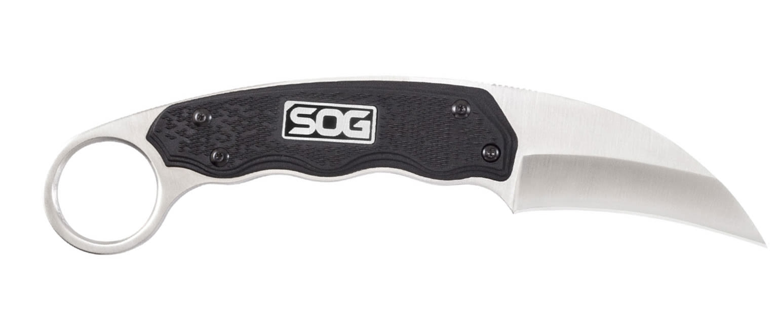 A fixed blade designed to handle multiple uses including personal protection, utility tasks, and more, the SOG Gambit is built to perform at all times. Comfortable in both forward and reverse grip, the unique, ergonomic handle is held up by the knife’s full tang design for added strength. Resembling a claw, the hooked 2.6-inch blade offers added functionality for hooking, tearing, and ripping. The Gambit comes with a hard nylon sheath for easy carry. Historically, this style of blade has been for self-defense and agriculture use. While it is still used for these purposes, it is also great for the outdoors.