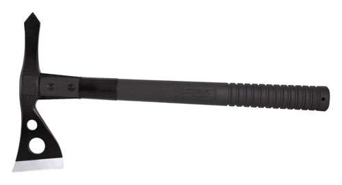 Based on the Vietnam Tomahawk, the Tactical Tomahawk is an extreme evolution of the original which was considered one of the more unusual weapons of its day. Today there is a real need for a versatile tool for breaching operations, excavation, obstacle removal, extraction, and other utility applications. The 420 stainless steel head with Hardcased coating is mounted to the fiberglass reinforced nylon handle with heavy-duty bolts and a steel ferrule for stability. Side hammer checkering insures precise placement when pounding. Carried in a nylon sheath this is a universal tool for modern man.