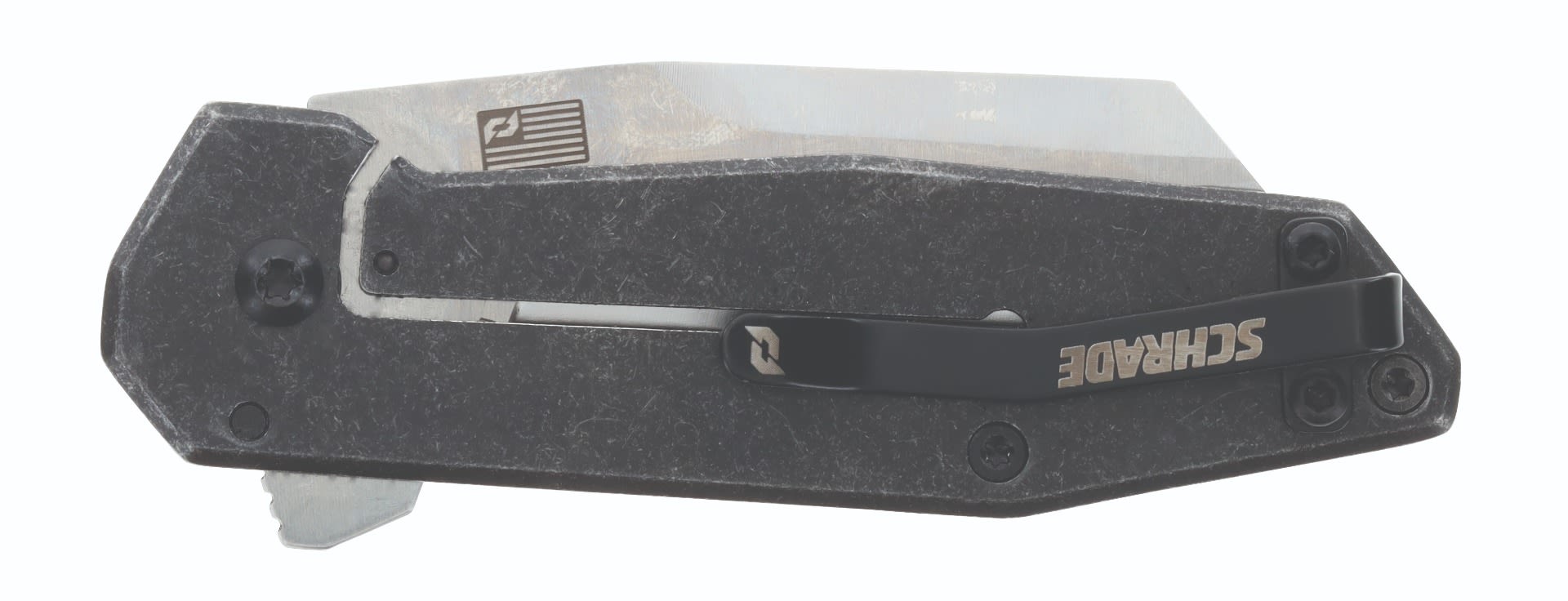 PROUDLY MADE IN THE USA, The SLYTE COMPACT is a member of the Schrade BETA Class. This Ultra-Thin Folder is constructed with a Modified Wharncliffe D2 Blade, Ultra Glide Technology, Stainless Steel Handle and Frame Locking System. The SLYTE COMPACT is a lightweight Everyday Carry with no limitations.